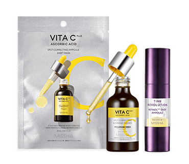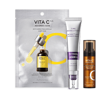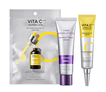 * ビタミンC:構成成分(製品の抗酸化剤)アスコルビン酸、(整肌成分)3-O-エチルアスコルビン酸、アスコルビルグルコシド(化粧水、美容液、フレッシュプレス美容液、泡マスク洗顔、美容液パッド)/整肌成分:3-O-エチルアスコルビン酸、テトラヘキシルデカン酸アスコルビル、アスコルビルグルコシド 製品の抗酸化剤:アスコルビン酸(クリーム)/製品の抗酸化剤:アスコルビン酸(デイリーマスク)/整肌成分:アスコルビルグルコシド(マイクロニードル コンセントレートパッチ) ※ミシャ ビタシープラス デイリーマスクはナノカプセル構造を採用、マイクロニードルパッチはリポソーム構造対象外。